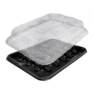Блюдо прямоугольное 24 секции черное с крышкой прозрачной PET 36х25х6,3см