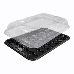 Блюдо прямоугольное черное 40 секций PET с крышкой прозрачной PET 46х30х6,3 см