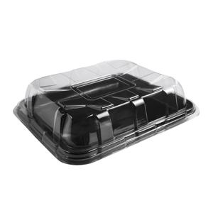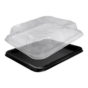 Блюдо прямоугольное черное с крышкой прозрачной PET 29х26х6,3см