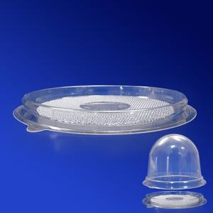 Пластиковая упаковка для пирожных достаточно крепка, весит меньше картонной. Она обладает лучшей влаго- и жиронепроницаемостью и гигиеничностью, что позволяет хранить кондитерское изделие дольше. Малый вес облегчает доставку упаковки производителю пирожных. Дно из полистирола имеет толщину 400-700 микрон. При этом его механические свойства обеспечиваются формой, имеющей ребра жесткости, которые, в свою очередь, делают упаковку красивее.