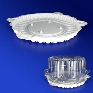 Пластиковая упаковка для тортов достаточно крепка, весит меньше картонной. Она обладает лучшей влаго- и жиронепроницаемостью и гигиеничностью, что позволяет хранить кондитерское изделие дольше. Малый вес облегчает доставку упаковки производителю тортов. Дно из полистирола имеет толщину 400-700 микрон. При этом его механические свойства обеспечиваются формой, имеющей ребра жесткости, которые, в свою очередь, делают тортницу красивее. Также дно может быть дополнено шипами, равномерно распределенными по площади дна упаковки для тортов, чтобы добавить устойчивости торта и не допустить его сползания от центра к краям при наклонах. При хранении и транспортировке допускается штабелирование до 3шт.