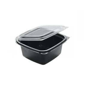 Элегантный PET контейнер 500 мл с откидной крышкой (прозрачная крышка, черное основание) – премиальное решение для упаковки порционных блюд, салатов и десертов.