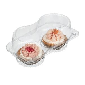 Двухсекционный прозрачный контейнер с фигурной крышкой — аккуратная подача десертов навынос Этот контейнер создан для кондитерских и кулинарий, где важно не просто упаковать десерт, а сохранить его внешний вид до момента подачи. Раздельные секции фиксируют каждое изделие, а высокая прозрачная крышка защищает крем и декор, не прижимая их