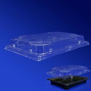 Крышка к контейнеру арт. PK19KSA прозрачная в комплекте с черным дном, которое продается отдельно (смотреть сопутствующий товар арт. PK19D/PK19DSA) — это практичная упаковка для фасовки, транспортировки и хранения суши, роллов, восточных сладостей, готовой кулинарии. Вес порции продукта около 0.4 кг. Тип замка дна и крышки внешний контурный. Крышка надежно защищает продукт от воздействия внешней среды.