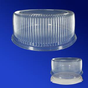 Пластиковая упаковка для тортов достаточно крепка, весит меньше картонной. Она обладает лучшей влаго- и жиронепроницаемостью и гигиеничностью, что позволяет хранить кондитерское изделие дольше. Малый вес облегчает доставку упаковки производителю тортов. Крышка из полистирола имеет толщину 400-700 микрон. При этом ее механические свойства обеспечиваются формой, имеющей ребра жесткости, которые, в свою очередь, делают тортницу красивее, не мешая обзору.