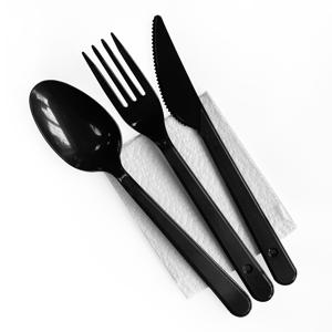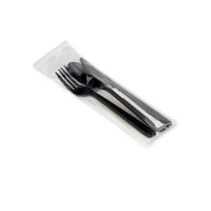 Ланч - набор 4/1 Вилка/ Ложка/ Нож черные Премиум/ Салфетка