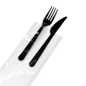 одноразовый набор столовых приборов (вилка и нож) в индивидуальной прозрачной упаковке — лаконичное и функциональное решение для форматов «на вынос» и доставки.