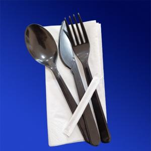 Ланч - набор - вилка/ложка/нож черные премиум/салфетка белая/зубочистка