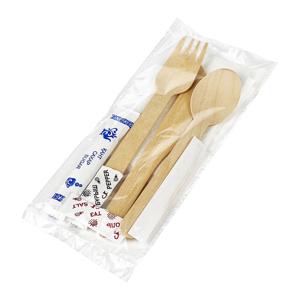 Расширенный комплект одноразовых приборов из древесного волокна: вилка и ложка, салфетки, а также порционные пакеты сахара, соли и перца, упакованные в единый индивидуальный набор. Такой формат закрывает ключевую потребность бизнеса — предоставить клиенту полностью укомплектованный сервис без дополнительных вложений времени и ресурсов.