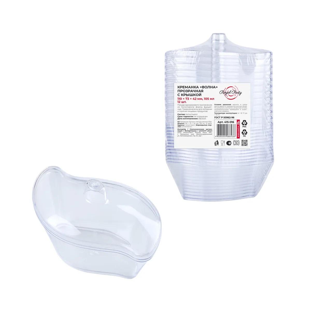 Мини-сервиз креманка Волна с крышкой PS 11,0x7,3х4,2cм 105мл 12шт/уп
