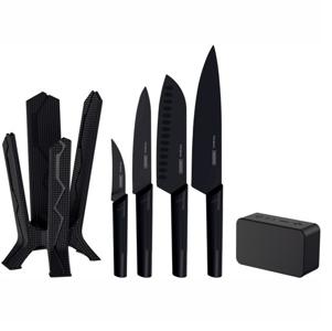 Этот набор ломает стереотипы, объединяя классические кухонные ножи с технологичными дополнениями. Подставка для ножей выполнена с использованием 3D-печати из термопластика, что придает ей не только уникальный дизайн, но и прочность. В дополнение к ножам, в комплект входит Bluetooth мини-колонка мощностью 5 Вт для создания атмосферы во время готовки.