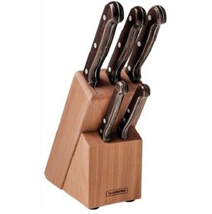 Рукояти ножей выполнены из обработанного дерева, изготовленного из прессованных натуральных древесных листов, пропитанных смолой при высокой температуре. Это повышает устойчивость рукояти к влаге, температурным изменениям и механическим повреждениям. Рукоять оснащена алюминиевыми заклепками для дополнительной прочности.