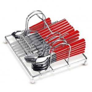 Набор столовых приборов 4 предмета на подставке 25 шт Leblon красный стальной 25 шт/уп