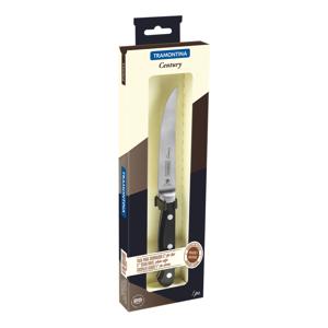 Рукоять изготовлена с использованием поликарбоната, армированного стекловолокном. Накладки из поликарбоната встраиваются в больстер (передняя часть рукояти) и закрепляются алюминиевыми заклепками для более надежного крепления. Анатомо-эргономичная форма рукояти обеспечивает безопасность во время использования. Обладает высокой ударопрочностью. Окончательный вид изделия достигается шлифовкой и полировкой вручную. Ножи серии Century Line были разработаны специально для интенсивного использования. Лезвие и рукоять ножа образуют цельный моноблок, позволяющий получить изделие, на которое производитель дает гарантию 25 лет. Гарантия 25 лет включает в себя ответственность на случай дефекта во время производства. Ножи Century хорошо сбалансированы: вес лезвия примерно равен весу рукояти. Это дает возможность работать удобно и долго, кисть руки не устает. Нож, благодаря качеству изготовления, долго сохраняет блеск и товарный вид. Он будет прекрасным украшением вашей кухни.