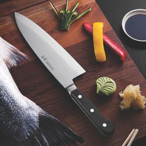 Широкое лезвие удобно для рубки, шинковки и работы с объёмными ингредиентами, а прочная клёпаная рукоятка обеспечивает уверенный контроль в руке.