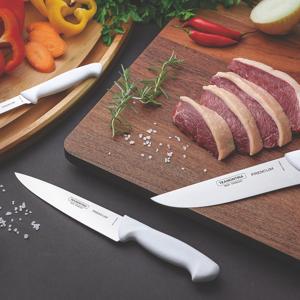Этот нож сочетает удобную длину лезвия и комфортную рукоятку, что помогает поварам быстрее справляться с нарезкой овощей, мяса и ингредиентов для горячих и холодных линий. Белый цвет подчеркивает чистоту рабочей зоны, что особенно важно для профессиональной кухни.