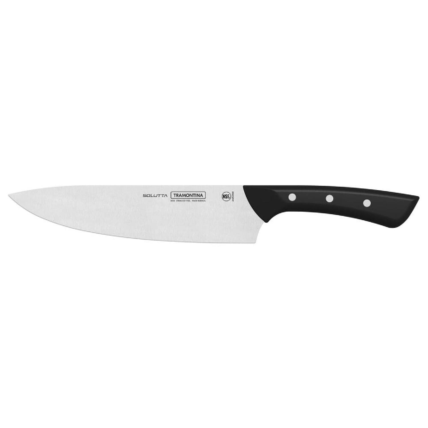 Нож шеф-повара Solutta от Tramontina — мощный и надёжный инструмент для обработки крупных продуктов.