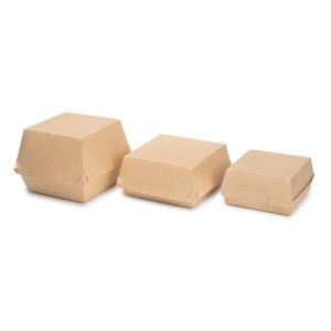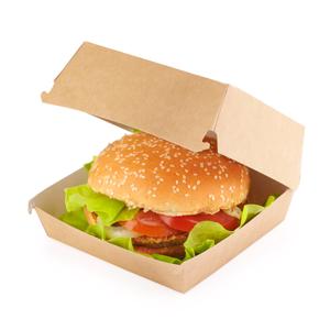 OSQ Burger Box L — это практичная и презентабельная упаковка для бургеров и другой продукции фастфуда. Прочная крафтовая коробка сохраняет форму изделия, защищает его при транспортировке и обеспечивает аккуратную подачу. Идеально подходит для кафе, ресторанов, фудкортов и служб доставки