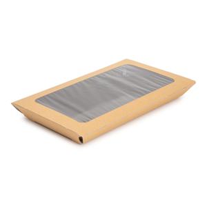 Бумажный крафт конверт COVER изготовлен из крафт картона плотностью 185гр/м2. Отлично удерживает жир и влагу благодаря полной внутренней ламинации полиэтиленовой пленкой толщиной 15мкр. Данный конверт с прозрачным окном используется в паре с лотком OSQ PLATTER 400. Получается удобная упаковка, которая красиво смотрится на витрине, выгодно позиционируя продукт. Очень удобен для различных нарезок, овощей и фруктов, когда необходимо сохранить свежий вид продукта. Идеально подходит для сегмента Take Away, Fast Food и Food Court, специализирующихся на реализации готовых продуктов питания на вынос.