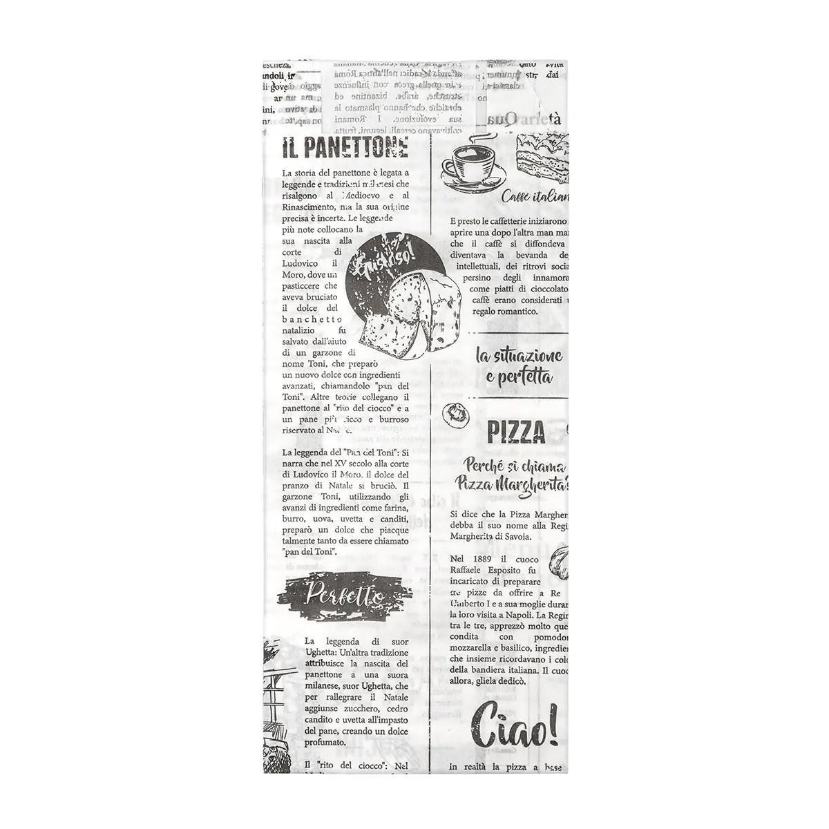 Пакет бумажный V-дно 21,0х9,0х40см рисунком газета Чао жировлагостойкий 35гр/м2 100шт/уп
