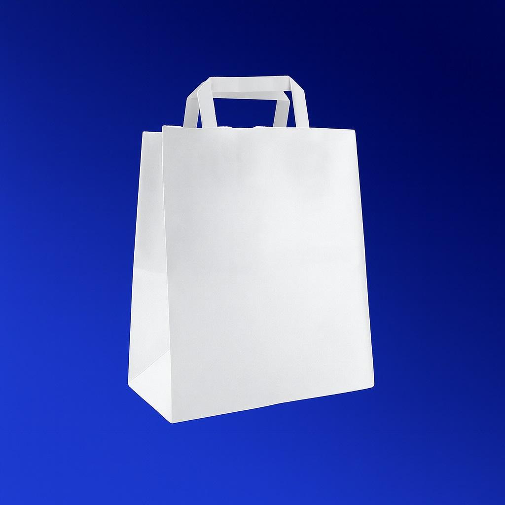 Пакет-сумка бумажная 28х24+14см (240*140*280мм) белый ручки плоские 70гр/м2