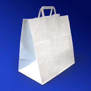 Пакет-сумка бумажная 37х32+20см (320*200*370мм) белая ручки плоские 70гр/м2