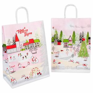 Наши новогодние пакеты – это не просто упаковка, это часть праздничного опыта, который вы дарите своим клиентам. Их нежный розовый фон с очаровательными иллюстрациями заснеженных деревенских пейзажей, весёлых медведей и снеговиков, а также надписью "С Новым Годом!" на русском языке, мгновенно создадут атмосферу волшебства и тепла.
