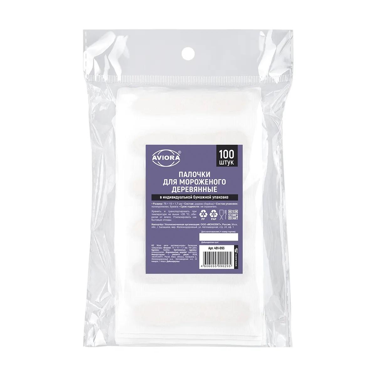 Палочка для мороженого 75 х 15 х 1,7 мм в индивид упаковке 100 шт/уп AVIORA