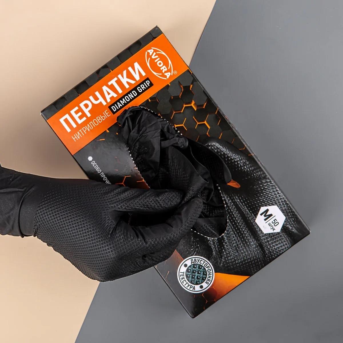 Перчатки из нитрила XL черные Алмазный хват 50шт/уп AVIORA 8гр