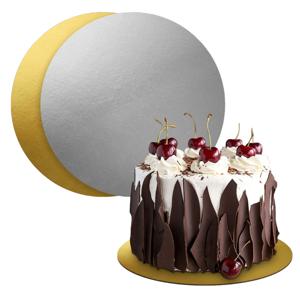 Двухсторонняя ламинированная подставка с золотой и серебряной поверхностью позволяет менять оформление десертов под стиль витрины, тематику мероприятия или дизайн заказа. Ламинированное покрытие обеспечивает аккуратность и защиту от влаги, сохраняя презентабельный вид торта на всех этапах работы
