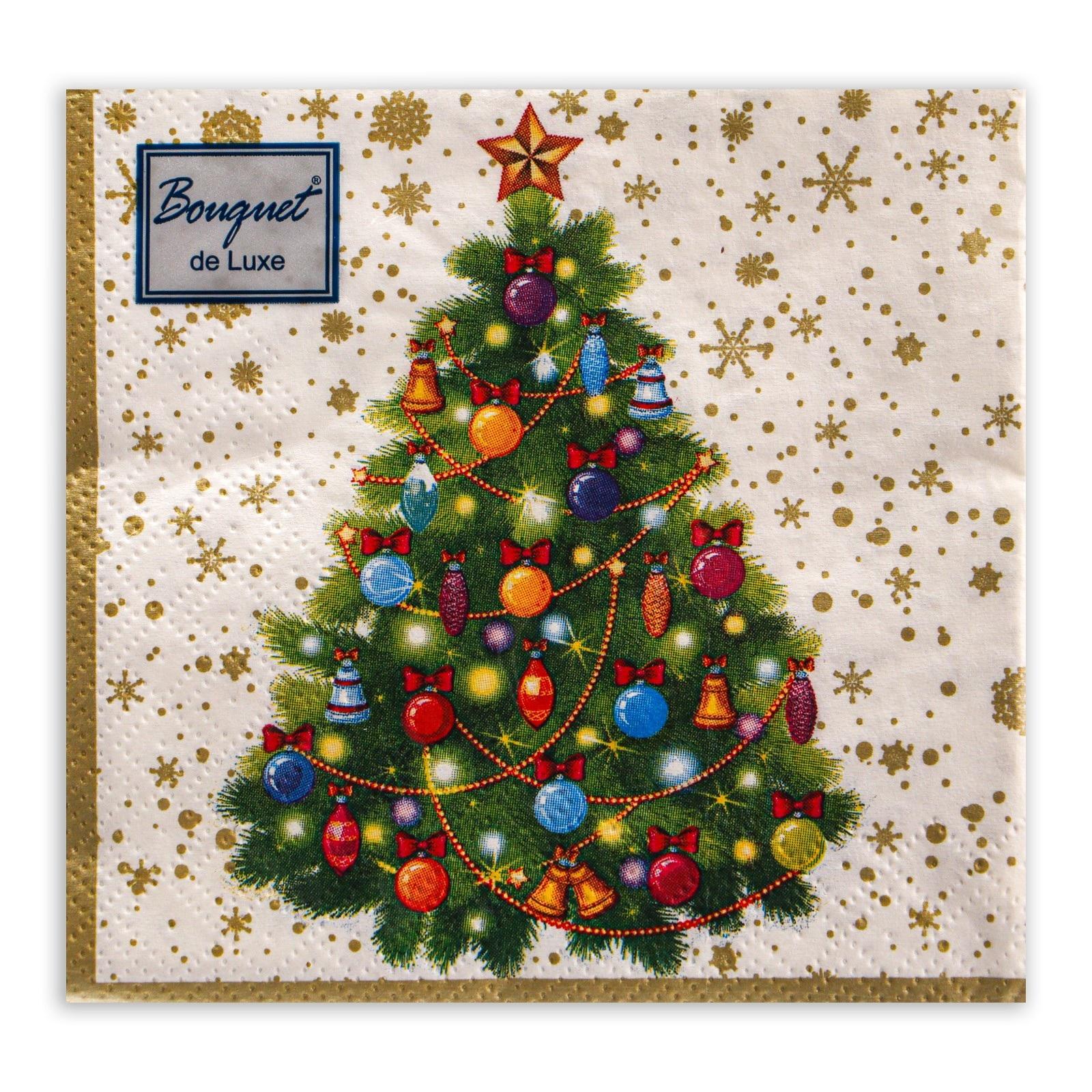Салфетки новогодние 24х24см 3 сл 25шт/уп Новогодняя ель на белом