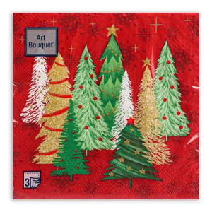 Салфетки новогодние 33х33см 3 сл 20шт/уп Ели на красном