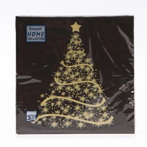 Салфетки новогодние 33х33см 3 сл 20шт/уп Волшебная ель на черном