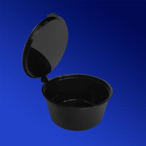 Круглая чёрная соусница с откидной крышкой — функциональное решение для заведений, где важны скорость обслуживания, аккуратность подачи и единый стиль упаковки. Сдержанный чёрный цвет подчёркивает премиальность блюд и отлично смотрится в доставке и формате take away