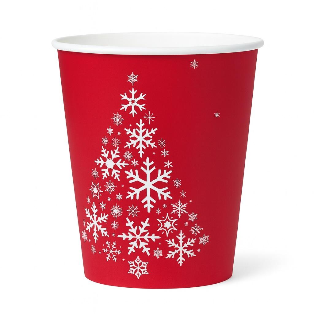 Бумажный стакан 350 мл в красном новогоднем дизайне— стильный и практичный способ подчеркнуть сезонность ваших напитков и создать праздничное настроение для гостей.Такая подача работает как дополнительный инструмент продаж: клиенты чаще выбирают напитки “в ярком стакане”, особенно в период предпраздничной активности.
