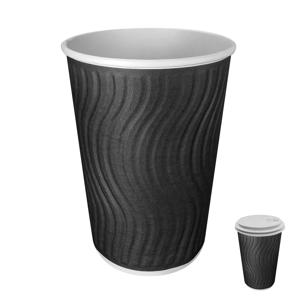 Стакан бумажный 400мл двухслойный черный гофрированный 30 шт/уп