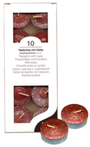 Свеча чайная Сияние красная с блестками 10шт/уп