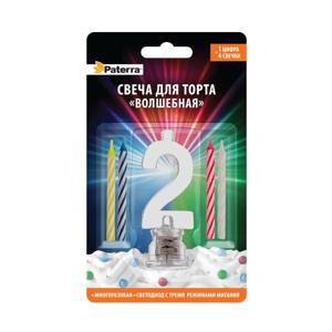 Свеча для торта Волшебная цифра 2 LED 1 цифра 4 свечки