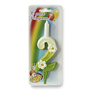 Свеча Цифра 2 с ромашкой 5х12см
