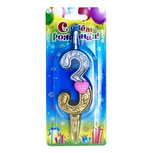 Свеча в форме цифры «3» с сердечком (5 х 12 см) — это нежное и милое украшение для вашего торта.