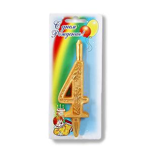 Свеча Цифра 4 золотая