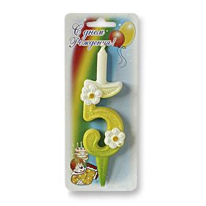 Свеча Цифра 5 с ромашкой 5х12см