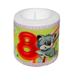 Свечка-фонарик «С днем рождения» для восьмилетнего ребенка. Веселый котик с пожеланием на обратной стороне и цифрой 8– вот что обрадует юного школьника. Вдобавок, свеча-фонарик долговечна, так как горит до двух суток.