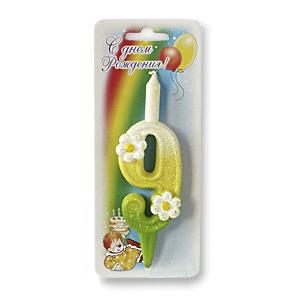 Свеча Цифра 9 с ромашкой 5х12см