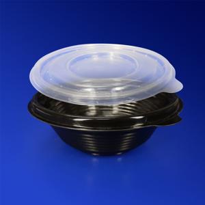 Тарелка одноразовая глубокая РР чёрная с крышкой