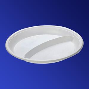 Плоская пластиковая тарелка из полистирола предназначена для сервировки и подачи как горячих, так и холодных закусок. Тарелка разделена на 2 секции для удобства компановки и сочетания блюд с разным вкусом и консистенцией (например гарнир и мясо, второе блюдо и салат, и др.)