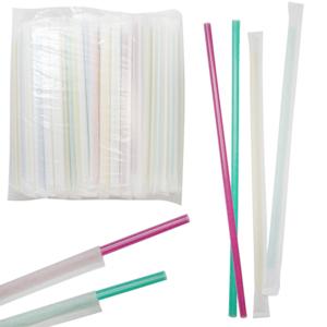 Трубочка отдельно упакованная d0,8x24см разноцветная 500шт/уп без гофры