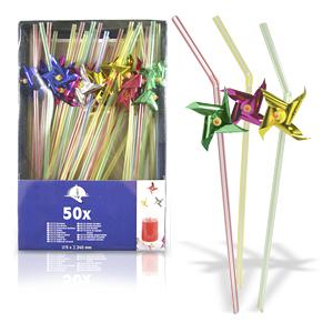 Трубочка Ветряная мельница d0,5x24см прозрачная с цветными полосками 50шт/уп Kg