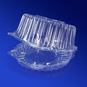 Пластиковая упаковка для пирогов достаточно крепка, весит меньше картонной. Она обладает лучшей влаго- и жиронепроницаемостью и гигиеничностью, что позволяет хранить кондитерское и кулинарное изделие дольше. Малый вес облегчает доставку упаковки производителю пирогов. Упаковка из полиэтилентерефталата имеет толщину 400-700 микрон. При этом ее механические свойства обеспечиваются формой, имеющей ребра жесткости, которые, в свою очередь, делают упаковку даже красивее, не мешая обзору.